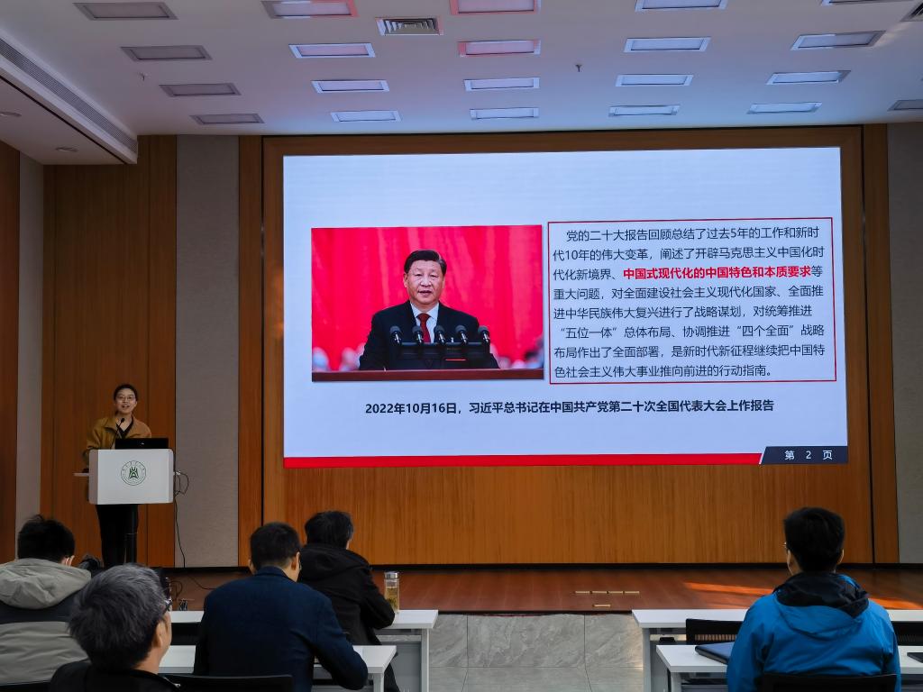 3月2日下午,食品科学技术学院党委在新工科大楼103组织各个党支部开展党的二十大精神“精读精讲”专题学习,学校党的二十大精神“精读精讲”宣讲团成员、马克思主义学院胡小娱受邀作“以中国式现代化全面推进中华民族伟大复兴”为题的辅导报告,学院全体教工党员参加学习。