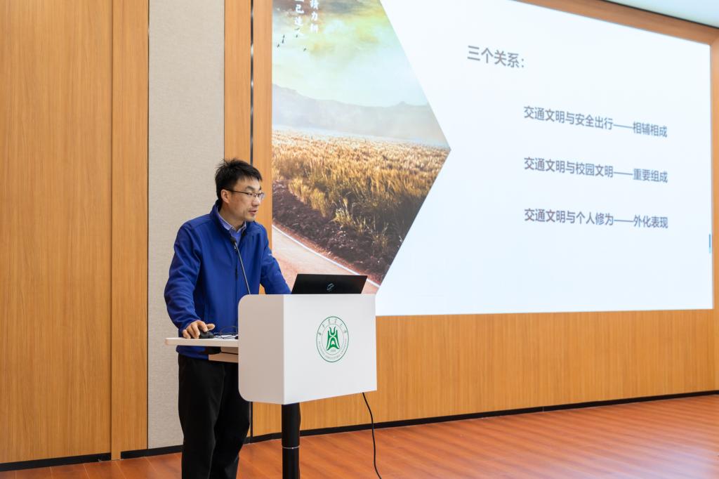 随后,校园管理党支部刘琛以“文明交通 安全出行”为主题向大家开展交通安全教育。他讲到,交通文明可以很好地保障出行安全,安全出行也可以促进交通文明的形成。同时交通文明是校园文明的重要组成部分,是高校师生个人修养的外化表现。电动车因为具备“快捷、方便、便宜、易于上手”等优点而备受青睐。但数量急剧增长的电动车在方便师生的同时,也给校园治理带来新的困难。不少车主没有经过安全驾驶培训,驾驶经验不足,尤其是部分不规范行为,给校园交通、消防、治安安全造成较大隐患,个别车主只顾方便自己不考虑他人的做法,破坏了校园秩序,也破坏了校园文明。校园里经常会出现的不规范行为主要有并行、逆行、闯灯、夜间不开灯等,他建议大家在日常出行中谨记“道路千万条,安全第一条”,并就“安全第一”的内涵进行深入挖掘。