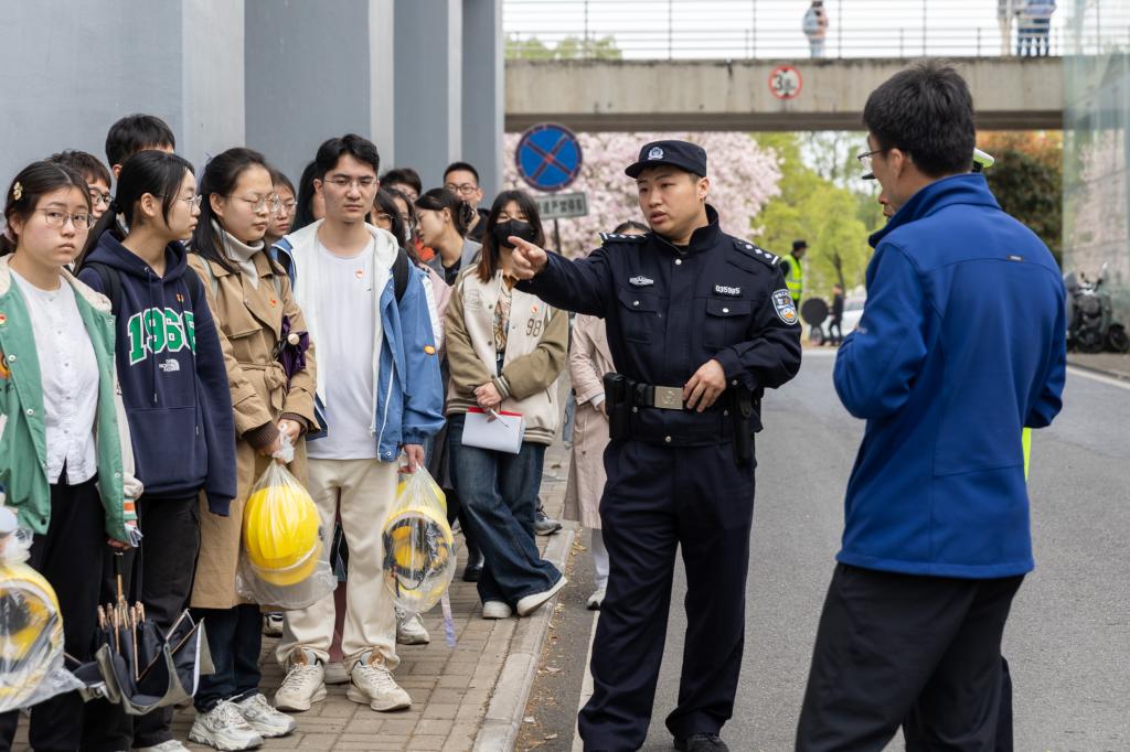 在交通模拟演示环节,校园管理办公室的同志结合校园特点,设计了非机动车包超机动车、机动车倒车盲区等多个场景。学生作为交通参与者进入模拟交通情景中,身临其境,亲身感受。付敬忠建议同学们从机动车驾驶人、非机动车驾驶人、乘车人和行人不同交通参与者的角度总结日常交通安全常识:如下车前要先观察路况,用远端手开车门、不要在大货(客)车前后穿行或车辆周围停留等等,要求同学们不仅要掌握这些交通安全常识,还要提高自身安全常识,规范交通行为,做到文明出行。