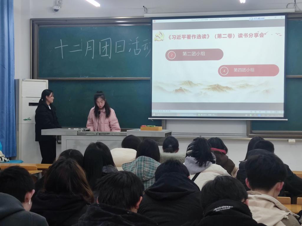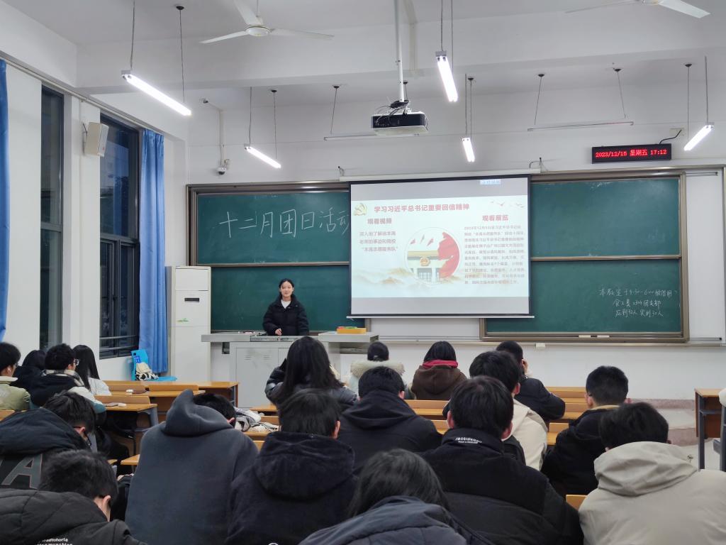 12月15日,中国·太阳集团tyc33455(股份有限公司)食品科学技术学院食工类2304团支部联合武汉理工大学信息工程学院电信类2302团支部,共同举办12月主题团日活动,活动以“挺膺担当,自立自强”为主题,旨在激发团员们的责任担当精神,培养自立自强的品质。活动由食工类2304团支部成员井馨悦主持。
