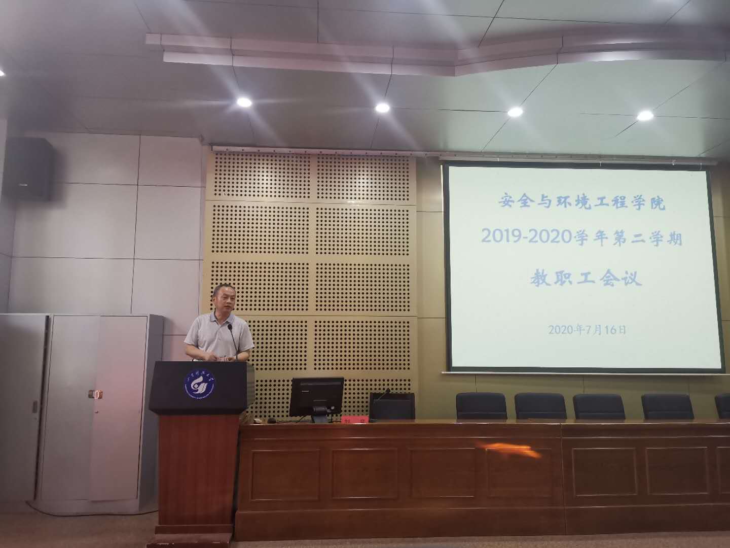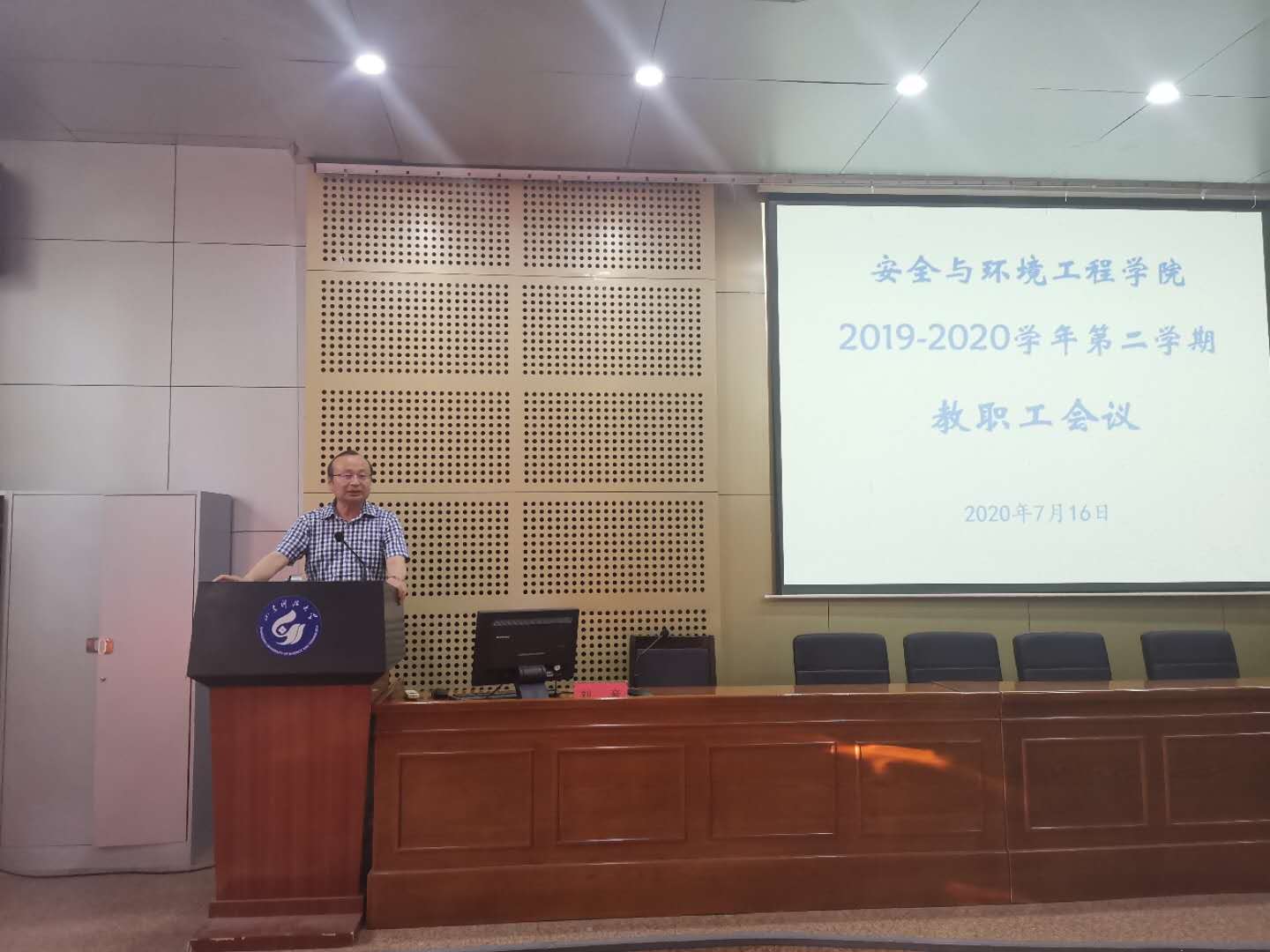 7月16日下午,安全学院召开2019-2020学年第二学期全体教职工会议。总结2020年上半年的主要工作,进一步部署下半年的重点工作。安全学院全体教职工参加本次会议,会议由张恩生主持。