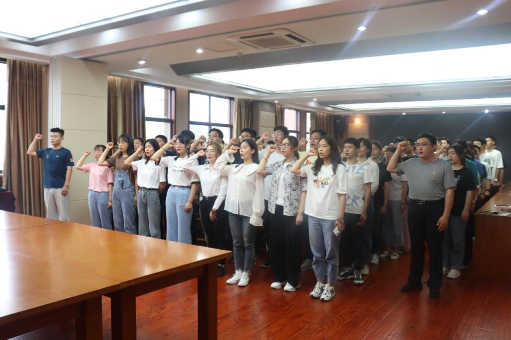 宣誓仪式在庄严的国际歌中拉开序幕。随后,领誓人刘豪带领学院全体预备党员进行宣誓。预备党员们面向党旗,举起右手,“我志愿加入中国共产党,拥护党的纲领,遵守党的章程……为共产主义奋斗终身,随时准备为党和人民牺牲一切,永不叛党!”用慷慨激昂的语气,庄严地向党旗宣誓,表达了对党的忠诚以及为共产主义事业奋斗终身的决心。