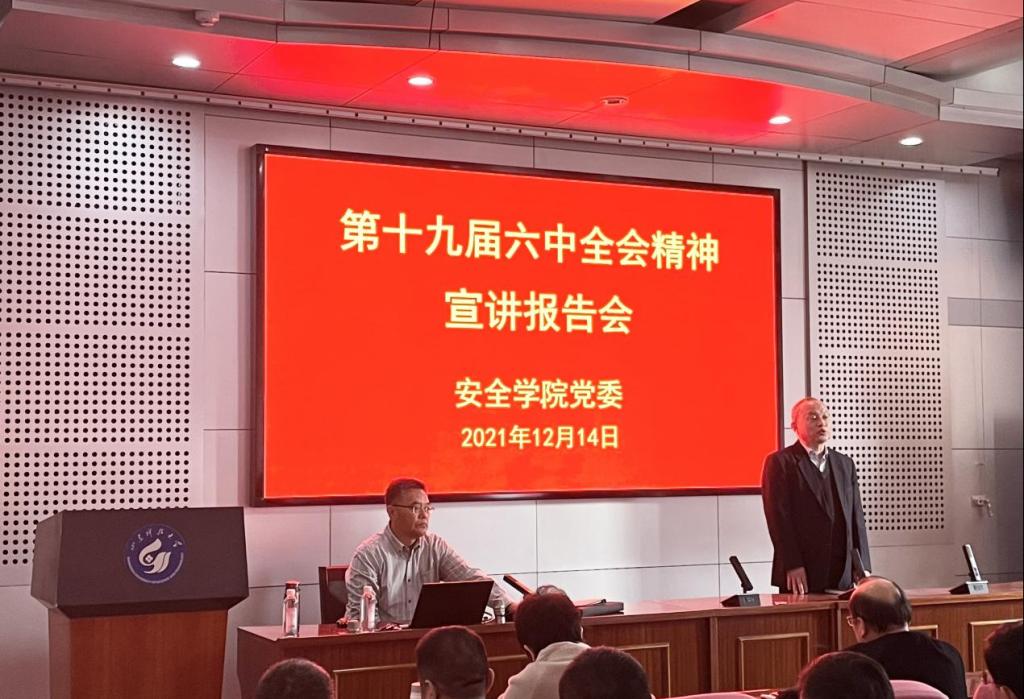 点击:12月14日,安全学院在J4-319召开党的十九届六中全会精神宣讲报告会,会议邀请校机关党委书记李双立作宣讲报告,学院党委书记张恩生主持报告会,学院全体师生党员参加会议。