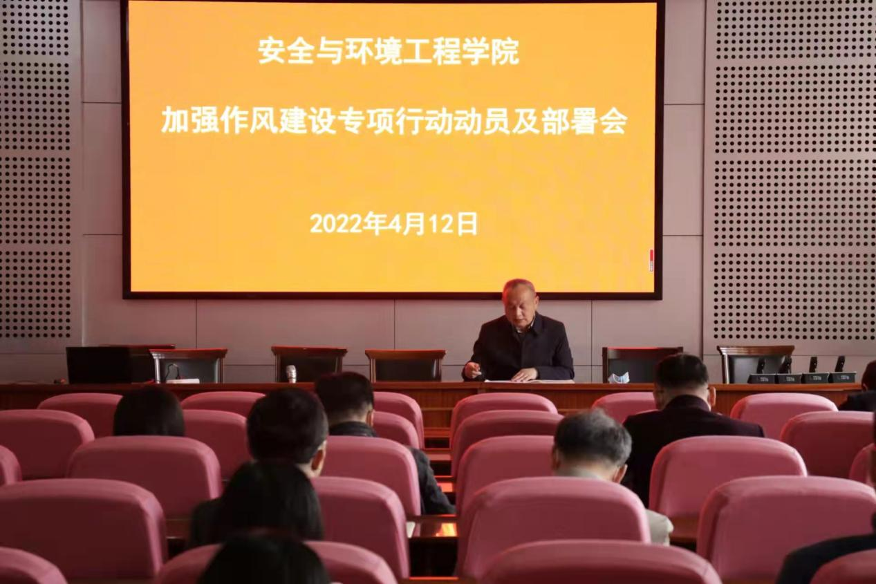 点击:4月12日,安全与环境工程学院召开加强作风建设专项行动动员部署会,学院全体教职工参会。会议由学院党委书记张恩生主持。