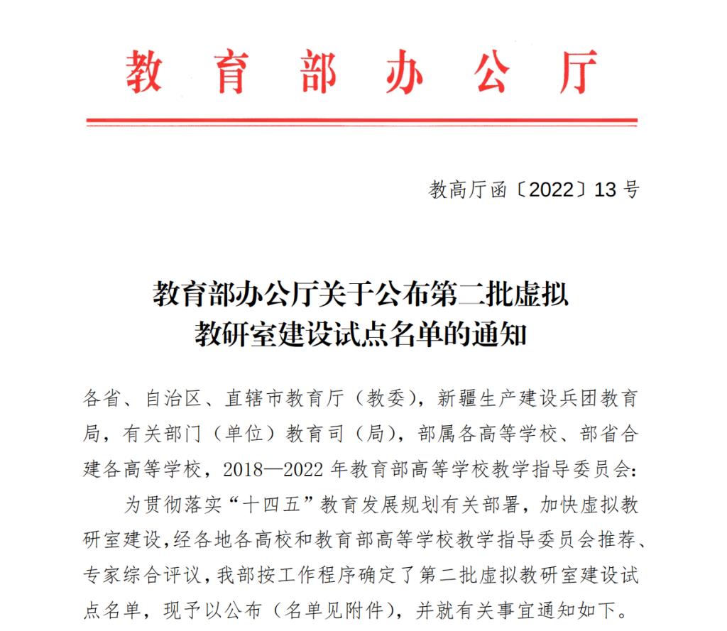 虚拟教研室是信息化时代新型基层教学组织建设的重要探索。虚拟教研室建设试点由教育部组织实施,旨在以现代信息技术为依托,探索建设新型基层教学组织,打造教师教学发展共同体和质量文化,引导教师回归教学、热爱教学、研究教学,提升教育教学能力,为高等教育高质量发展提供有力支撑。