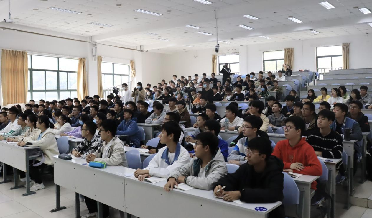 课堂上,姚庆国首先对中国共产党第二十次全国代表大会中习近平总书记所作报告的要点进行了分析,分别从“中心任务”、“本质要求”、“五个坚持”、“必由之路”四个方面进行深入浅出地讲解,指出应抓住“马克思主义是立党立国,兴党兴国的首要条件”这一核心要点,并由此呼吁同学们坚定信仰信念,坚持走中国化时代化的马克思主义行。关于“两个为什么”及“两个行”问题,姚庆国分别从“拾零”、中华民族历史以及建党百年历史等多个方面进行剖析,强调应根据马克思主义的实践性、人民性以及先进性,探索人类社会的发展规律,从而更好的完成中国特色社会主义建设。他表示,从1840年鸦片战争到1949年新中国成立,从救国兴国到富国强国,马克思主义在其中起到了深远的影响,高扬马克思主义中国化旗帜,我们必须深刻理解“两个结合”,深刻把握“两个行”。最后,结合国家发展情况及学习实际,姚庆国勉励大家要高高扬起理想的风帆,自觉将个人理想与祖国命运、民族前途紧密相连,矢志不渝,倾心报国,用大写的理想书写大写的人生;他也希望大家做“理想青年”,不做“光想青年”,志在千里,更要笃行致远,一步一个脚印,用汗水浇灌梦想。