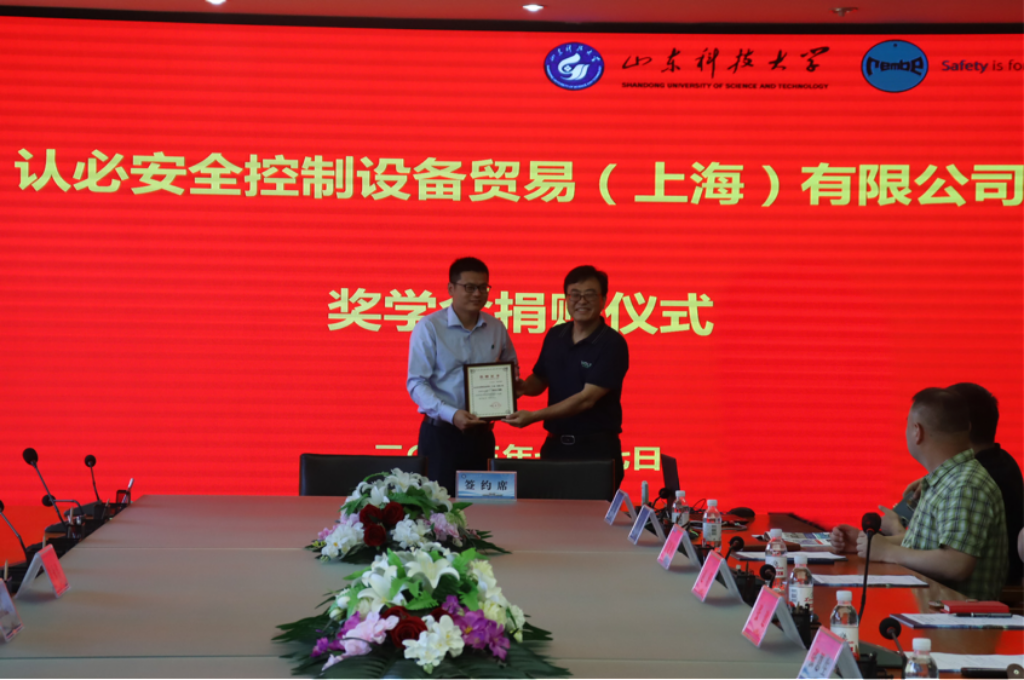 点击:7月7日上午9:00,认必安全控制设备贸易(上海)有限公司奖学金捐赠仪式在j4-322会议室举行。认必安全控制设备贸易(上海)有限公司董事长Niklas Kitzhöfer、总经理于伟、销售经理陈永洋、经理于开明,山东科技大学副校长张建、合作发展处基金会办公室主任赵珊、安全与环境工程学院党委书记张恩生、党委副书记兼副院长王建友、副院长周刚、科研秘书张琦,储能技术学院直属党支部书记秦晓钟、直属党支部副书记兼副院长汪国庆、直属党支部委员于昊,参加了本次捐赠仪式。本次仪式由安全学院党委副书记王建友主持。