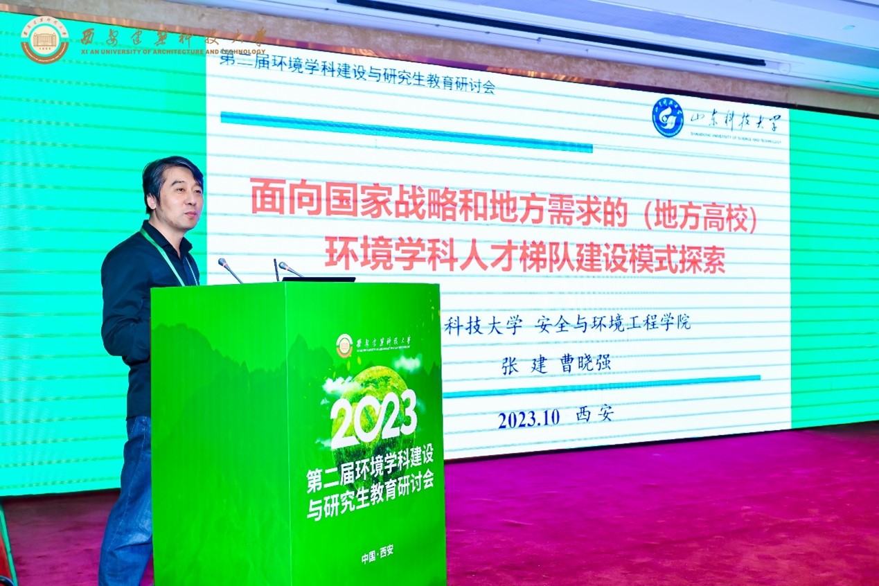 我院环境学科带头人,山东科技大学黄河三角洲地表过程与生态完整性研究院院长张建教授带队参加会议,学院副院长曹晓强教授和环境系支部书记李杰教授陪同参会。曹晓强副院长在会议期间作了主题为“面向国家战略和地方需求的(地方高校)环境学科人才梯队建设模式探索”的专题报告。报告介绍了学校及环境学科概况,学科特色,研究生创新能力培养背景、研究生创新能力素质要求、地方行业高校面临的问题,全面展示了山东科技大学环境学科近年来的持续努力与成效。同时,曹晓强副院长还介绍了山科大对于优秀博士等高层次人才引进的积极态度和举措,并热烈欢迎不同层次的高端人才加盟安全与环境工程学院。