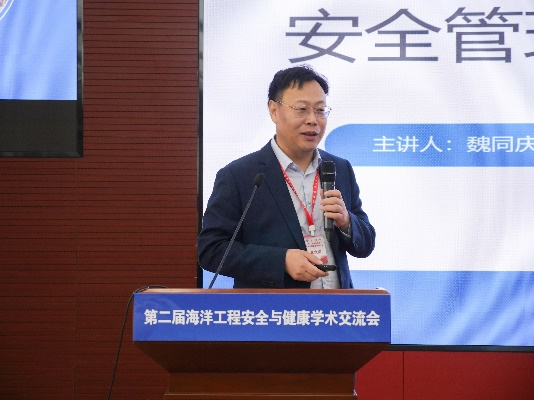 中国职业安全健康协会常务副秘书长吴业明,启东中远海运海洋工程有限公司副总经理、安全环保总监魏同庆分别为大会致辞和做特邀报告。会议由蓬莱巨涛海洋工程重工有限公司安全总监张建利主持并作专委会年度工作汇报。