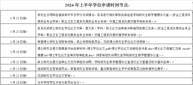 点击:根据《山东科技大学研究生学位论文质量全过程管理办法》及学校研究生院通知安排,为做好安全与环境工程学院2024年上半年研究生学位论文答辩及申请学位工作,不断提高学位授予质量,学院研究生教学管理办公室要求事项如下: