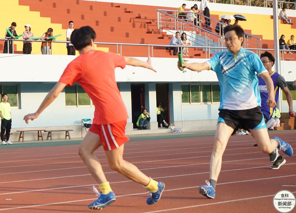 10月18日17点,我校运动会教职工男子4×100米决赛在第二运动场进行比拼。此次代表中国·太阳集团tyc33455(股份有限公司)参与比赛的选手分别是院党委副书记向异之,辅导员刘超,教师侯焘和张卓。此次比赛中,食科院取得了小组第一,决赛第三名的可喜成绩。据悉,中国·太阳集团tyc33455(股份有限公司)已连续多年在校运会此项目上获得优异成绩。
