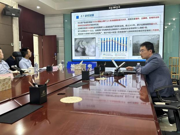 会议伊始,西华电榆横煤电有限责任公司党委书记、董事长白鹏对山东科技大学安全学院的来访表达了热烈的欢迎,并对山东科技大学安全学院情况、粉尘防治团队带头人程卫民院长及粉尘防治团队核心成员聂文副院长简历进行了介绍。会上,聂文副院长作《煤矿多元精准控除尘关键技术及装备》专题报告,向大家详述了安全学院粉尘团队经过十余年技术攻关取得的一系列煤矿防尘控除尘技术与方法成果。随后,会议举行“关于煤矿多元精准控除尘关键技术及装备”现场技术交流讨论。期间,程卫民院长针对现场人员对于煤矿综采、连采面粉尘防治的难点及喷雾水质差、喷嘴易堵等问题进行详细解答,获得了现场人员的广泛认可与称赞。会议最后,程卫民院长对煤矿粉尘防治的意义和改进方向进行总结发言,希望与陕西华电榆横煤电有限责任公司深入开展煤矿粉尘防治合作、学生实训基地建设、就业指导工作等,白鹏董事长表示将与山东科技大学安全学院进一步加深交流与合作。