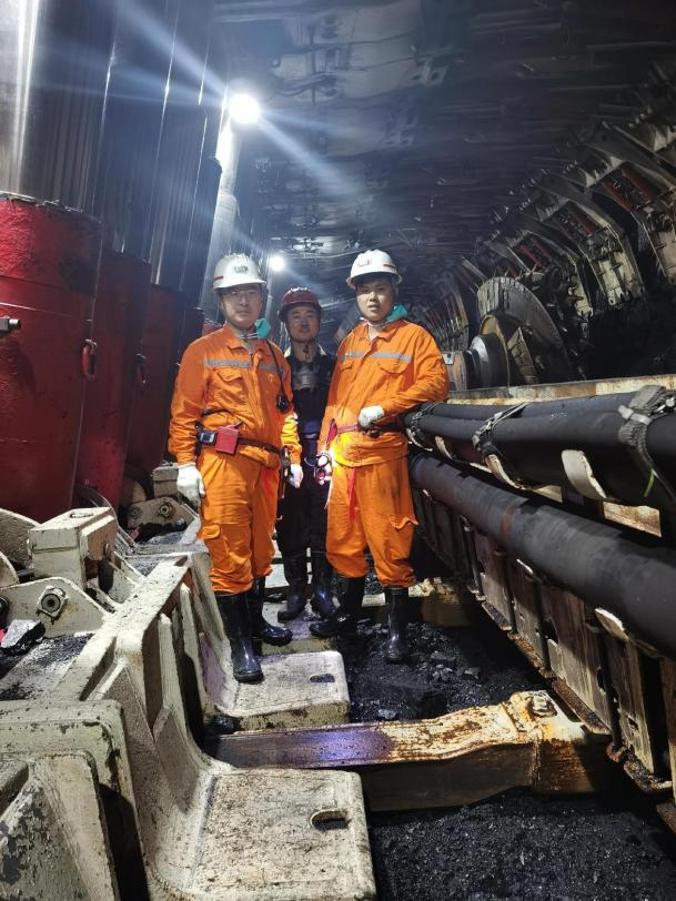 会议结束后,聂文副院长、彭慧天和刘强老师在通风队队长曹佳佳的陪同下,至陕西华电榆横煤电有限责任公司小纪汗煤矿井下13216连采面和13218综采面现场进行粉尘防治技术调研。