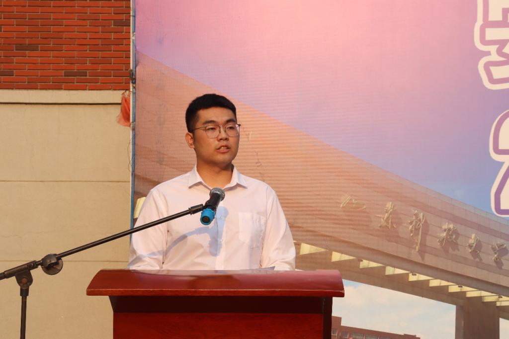 2020级新生刘丰源代表新生向为迎接我们到来而辛勤筹备、努力付出的领导、老师以及学长学姐表示最衷心的感谢。他代表新生庄重承诺:会尽快适应新的大学生活,融入班级宿舍;做到包容,和谐,共同营造团结友爱的氛围;会严于律己,从小事做起,认真遵守学校的各项规章制度;明确学习目标,成为全面发展的大学生。