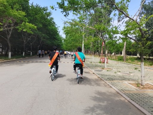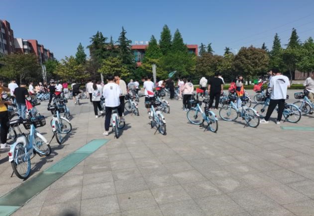 本次活动在尤洛卡广场举办,吸引了安全与环境工程学院与经管学院各年级近百名同学的积极参与。活动进行了“碳中和知识竞答”预热环节,限时3分钟,竞答过后,活动参与者跟随安全学院学生会副主席陈国卫,为此次绿色文化节顺利召开送上了诚挚的祝福。参与活动的同学们骑上共享单车,手握小红旗和红色气球挂件,穿行过一个个采访点,感受低碳出行的魅力。本次活动,旨在通过共享单车绕校园的低碳骑行之旅,领悟碳中和环保在我们身边,倡导简约适度,绿色低碳的生产生活方式。
