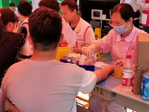 活动开始前青年志愿者们现场指引填表、登记,工作人员查体化验、献血、领取献血证,所有流程都井然有序地进行。工作人员及志愿者们细心提醒同学们献血过程中及献血后要注意的事项。同学们挽起袖子献出自己的青春热血,生命在他们的鲜红血中绵延,每一位参与献血的同学脸上都洋溢着开心的笑容,他们用奉献的暖风吹拂了科大的每一个角落。