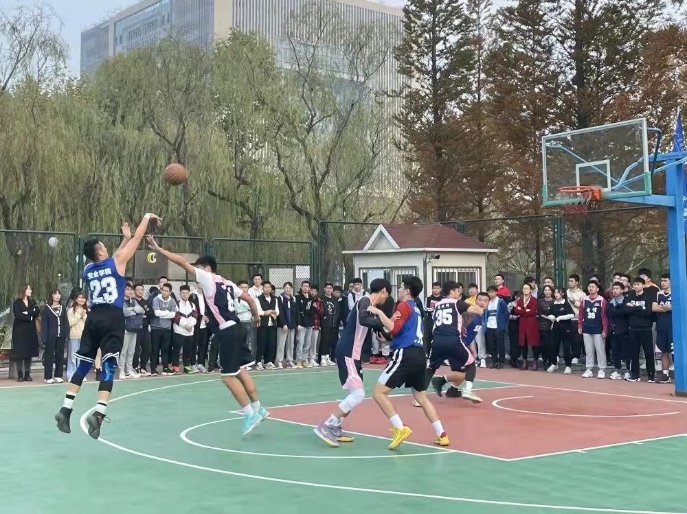 决赛由电信学院对阵安全学院。裁判吹响哨声后,现场的气氛急剧攀升,在场的同学们欢声高呼,情绪高涨,为自己喜欢的队伍加油助威。比赛一开始,电信代表队凭借8号杨知虎出色的手感以及队友之间的配合,把比分拉大到8:1,安全代表队及时调整进攻策略,凭借防守强度的提升以及23号韩淮安的出色发挥,一度把比分追平甚至反超了比分。