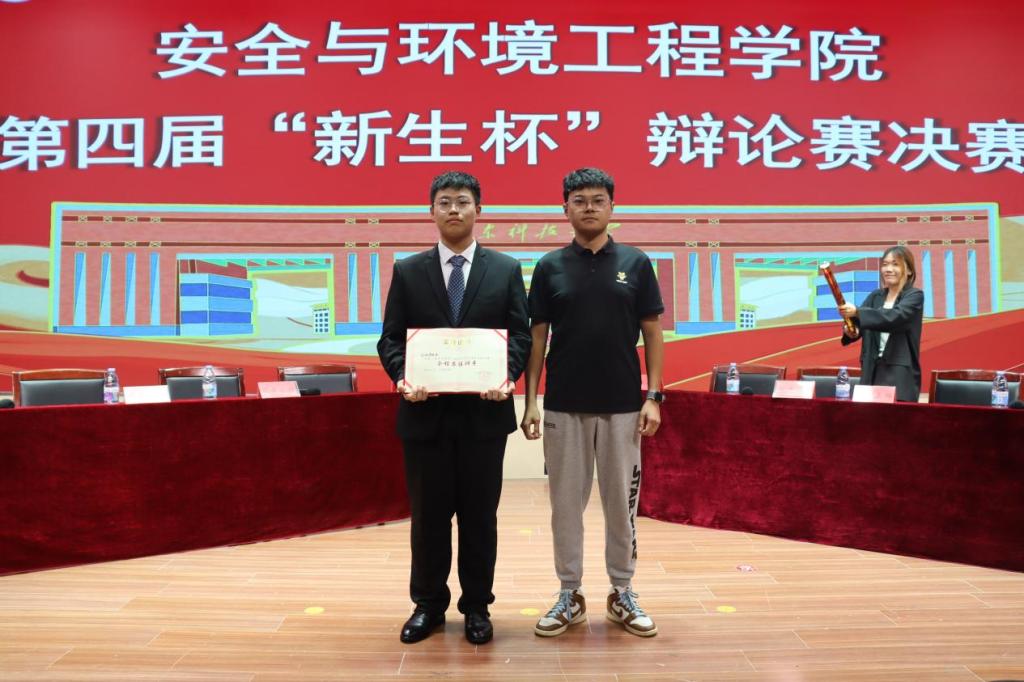 决赛由环境工程二班二队、环境工程三班一队、安全工程四班二队、环境工程三班三队四支队伍两两对决,由所获分数排名决出胜者。两支队伍就“广告利于大众消费VS广告不利于大众消费”和“年轻人该把兴趣当事业VS年轻人不该把兴趣当事业”两个辩题展开激烈讨论。比赛一开始,整个赛场变得紧张激烈,随着正反两方的激烈驳辩,辩论赛进入高潮。面对反方的引经据典、旁征博引,正方辩手们巧用四两拨千斤的方法,一次一次化险为夷,赢得了在场同学的阵阵掌声。最终,环二二队获得冠军,环三一队、环三三队分获亚军、季军。环二二队的马溯源荣获最佳辩手。