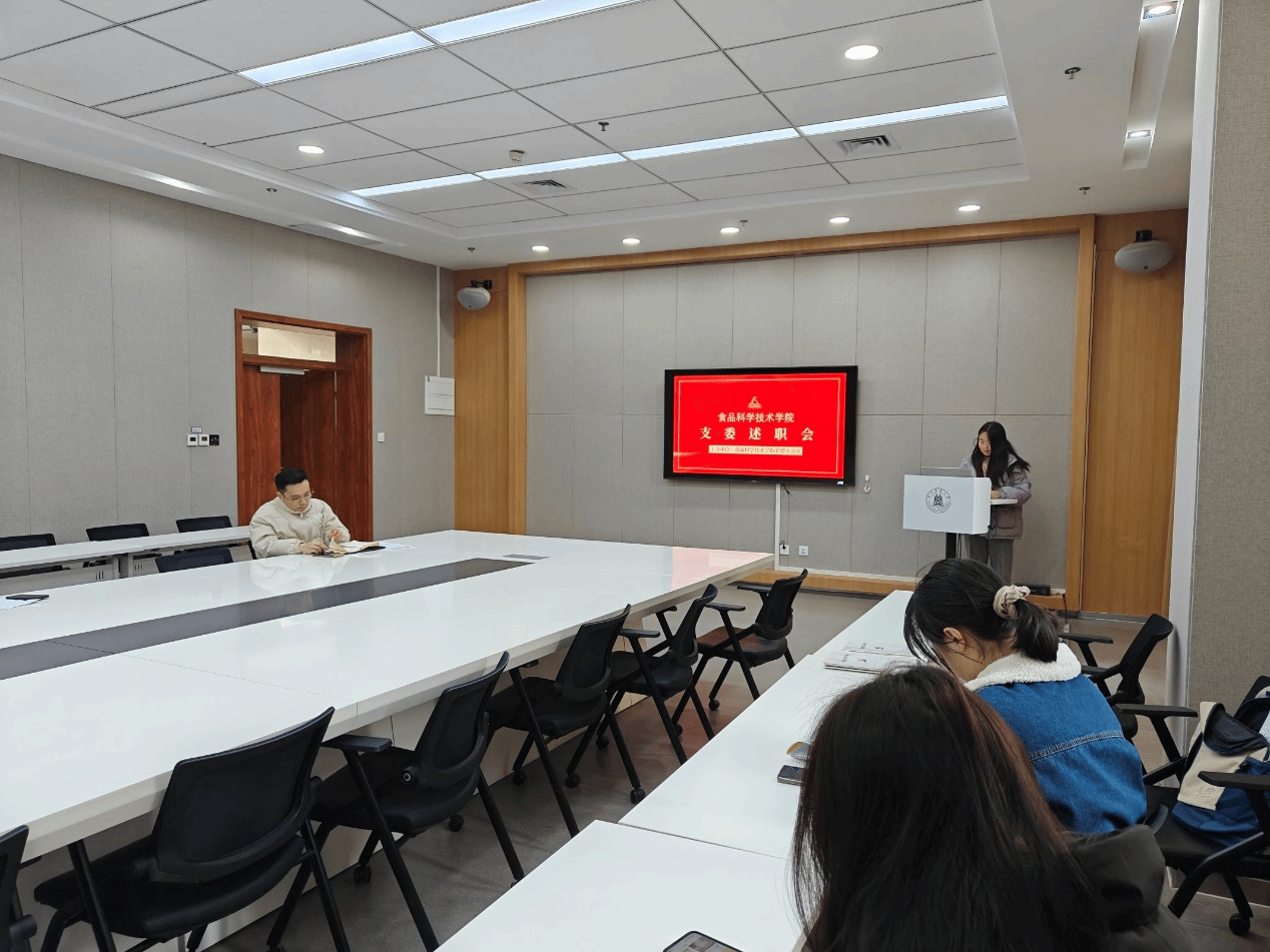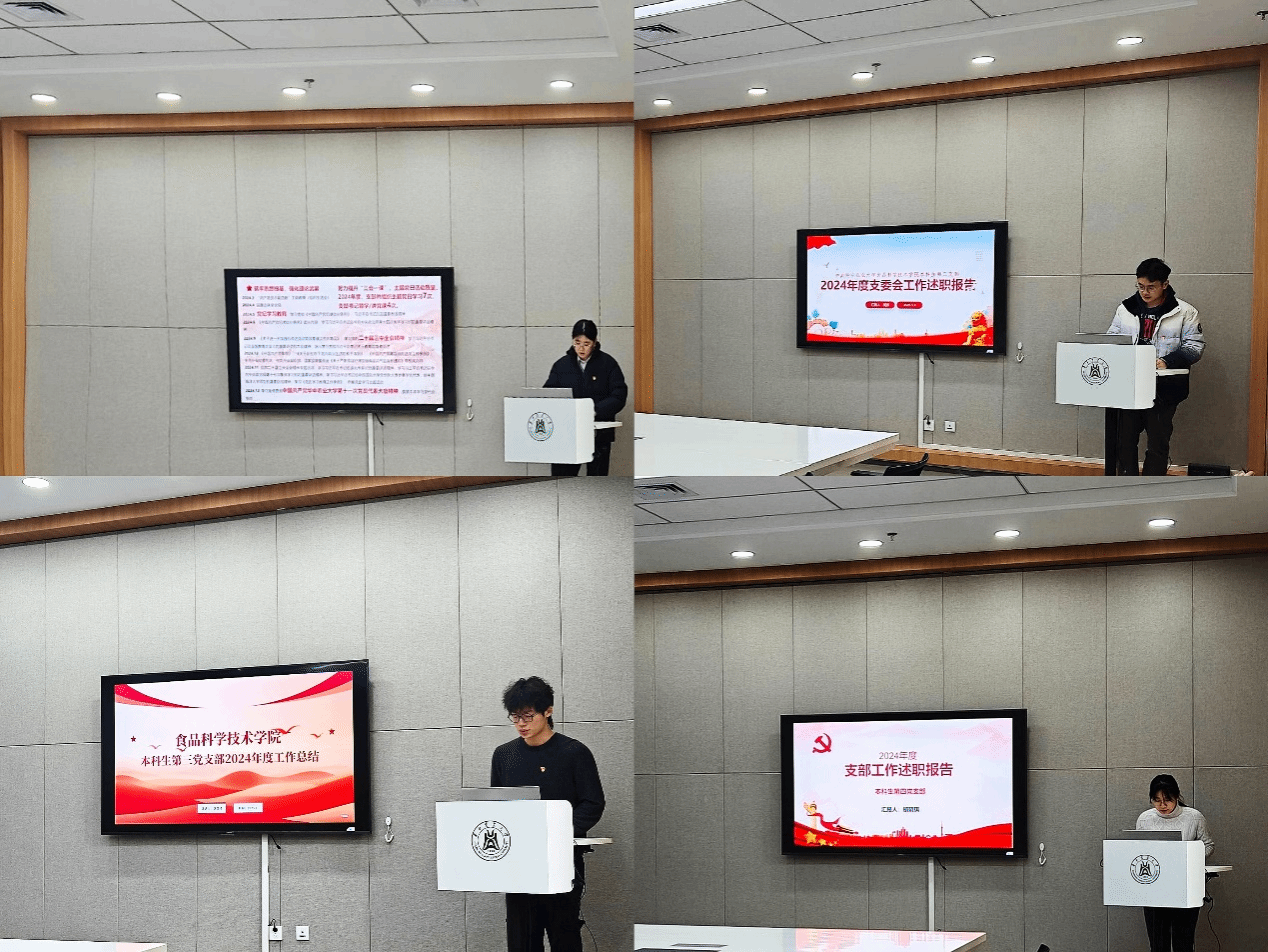 2025年1月3日中午,食品科学技术学院2024年度本科生党支部述职考评会在新工科楼122会议室召开,学院党建辅导员李虎、各本科生党支部书记、副书记及支部委员参加会议。
