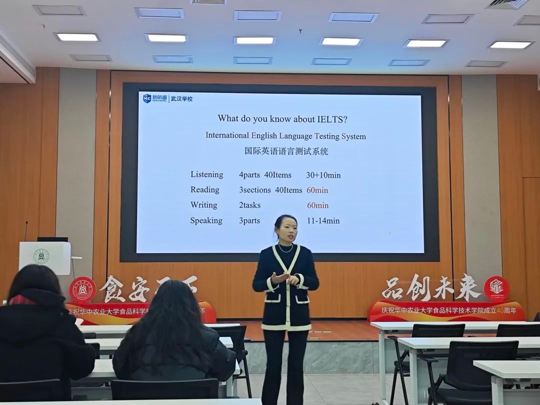 为帮助同学们更好地了解留学申请流程、提升全球胜任力,3月12日晚18:30,食品科学技术学院特邀新航道前程留学研究生部总监杨涛、新航道武汉学校雅思项目一部总监张晓丽两位资深专家,在食科院楼103会议室举办了一场“雅思&留学”规划指导讲座,讲座吸引了众多有留学意向的同学参与,现场气氛热烈。