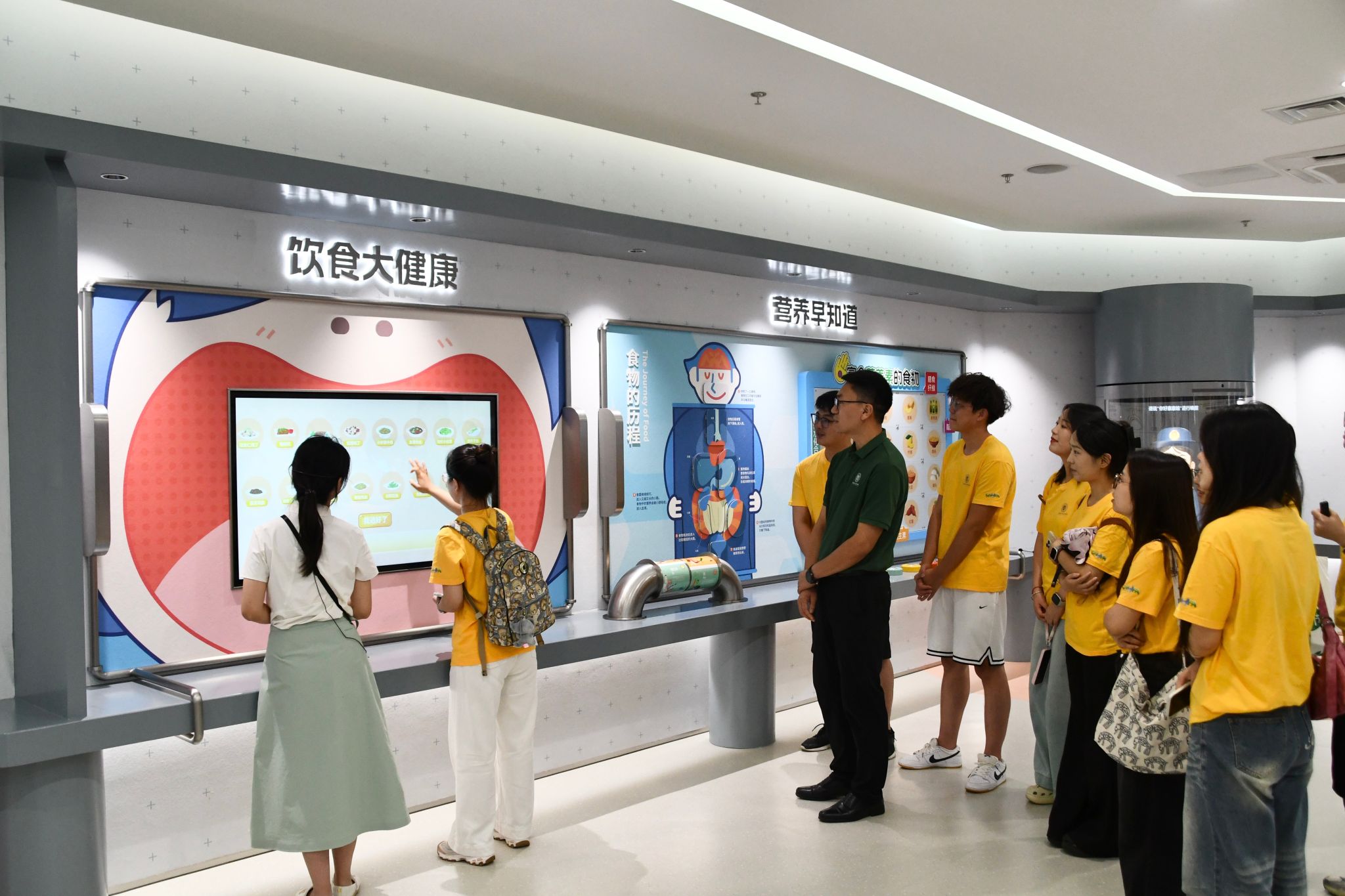 在检验所科普主管周晓婷的引导下,学院师生参观了食品安全科普教育基地,通过“食安为先”“技术护航”等六大主题板块,近距离了解食品检测技术与监管流程。江小明表示,检验所长期致力于为食品安全提供技术支撑,希望与高校携手打造更专业的科普平台。