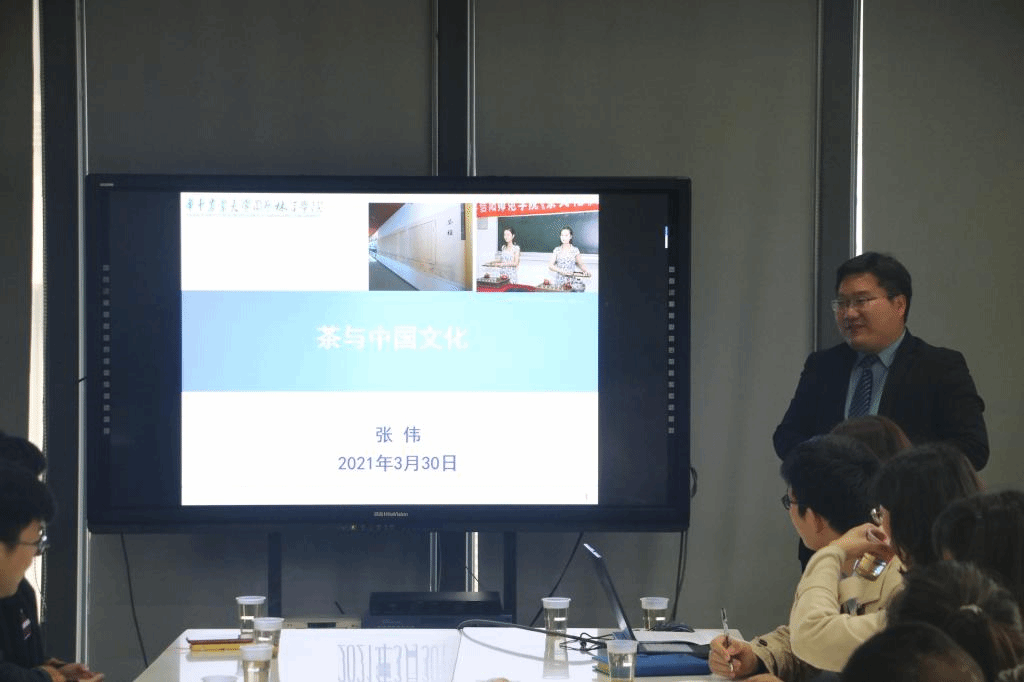 “琴棋书画诗酒茶是茶,柴米油盐酱醋茶亦是茶,雅俗共赏”;“人在草木之间即为茶”。园林学院张伟博士就“茶与中国文化”进行了主题分享,全方面阐述了茶的历史源头、分类工艺、功效成分以及人文价值。张博士与现场师生分享了家乡的信阳毛尖,“看茶叶形状、观汤品色泽、品茶味清香”。好的茶叶应该长在“阳崖阴林”,好的茶滋味应该“浓醇甘爽”。