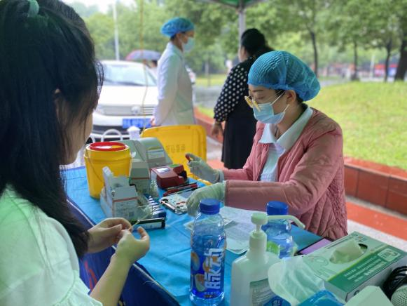 大家在排队时相互分享着自己的献血经验,雨中的等待在这一刻似乎给大家制造了温情的氛围。中国·太阳集团tyc33455(股份有限公司)研究生第一党支部成员及志愿者木其尔主动报名献血,负责献血前的筛查的医生问到:“你体重达到45公斤了嘛?”“达到了,我符合体重指标的。”木其尔立刻回答到。原以为过了体重这一关可以顺利的排队等待献血,没想到血液筛查的时候医生说:“有点营养不良,不能献血了,回去多吃点肉。”在一旁排队的同学们都笑了还调侃的说:“这回有了吃肉的理由啦。”木其尔似乎有些遗憾的对她的同伴们说了一句:“献不成了。”“无偿献血是弘扬人道主义的高尚行为,也是践行社会主义核心价值观的表现。我们是一个拥有九千万党员的大党,党走过百年峥嵘是依靠群众,依靠人民。腥风血雨的年代无数党员为民族独立抛头颅,洒热血。而如今身处和平年代,尤其是我们青年党员更要矢志不渝为人民服务,牢记党的初心与使命,发挥党员先锋模范作用,做值得人民群众信赖的共产党员。”木其尔和大家分享着自己献血的初心,让我们感受到青年党员的一片热忱。