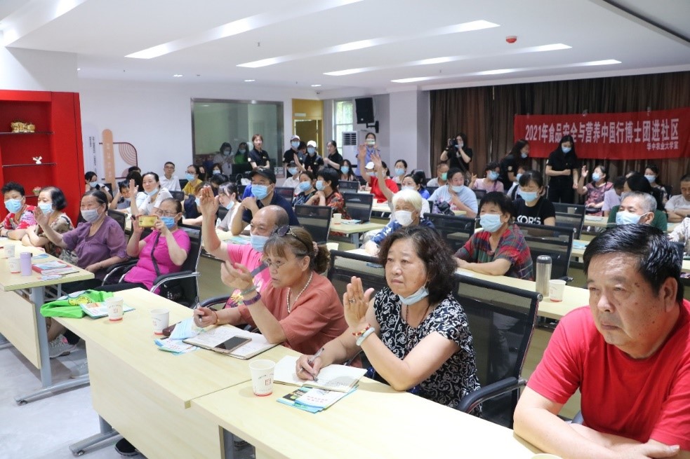 活动结束后,社区居民同样也是华农校友的谢阿姨讲到“非常感谢你们走进社区来,跟我们分享食品安全知识,通过这次课堂让我对平时的一些食物相克的说法及一些谣言有了更清晰的了解。”