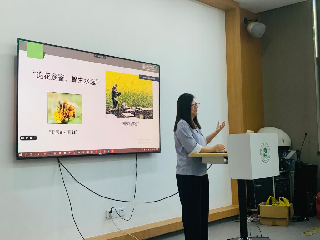 鲁群副教授结合自身学习、工作和科研经历,分享了她的心路历程。她从自身的研究方向出发,以蜜蜂的采制物、蜜蜂的分泌物及蜜蜂的躯体三个方面向大家介绍了蜜蜂。她还建议大家,有机会多去看看外面的世界,多接触优秀的科研工作者,这样不仅可以扩宽眼界,也可在在遇到困难时提供新思路,从而迎刃而解。她希望研究生新生像小蜜蜂一样多努力、多钻研,取得丰富成果,最后祝愿大家学业有成。