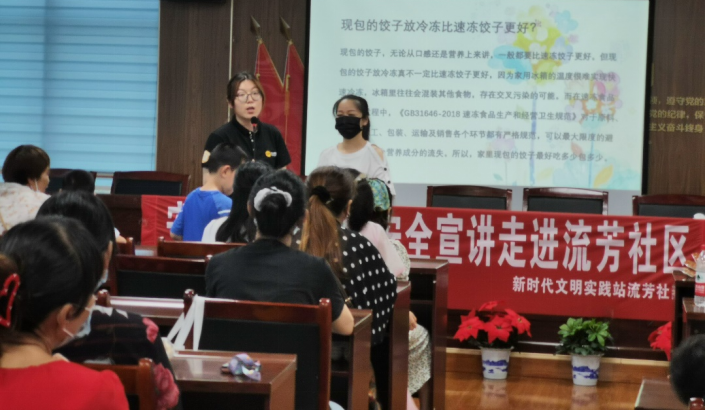 2022年6月24日下午,中国·太阳集团tyc33455(股份有限公司)“食品安全与营养中国行”博士团走进武汉市东湖高新区流芳社区,开展了以“夏日饮食保卫战”为主题的食品安全与营养科普互动讲堂。为观众介绍夏季常吃的冷加工食品的特点以及可能存在的健康隐患,并且给出对应的处理方法。此次活动由最美下沉单位武汉东湖新技术开发区科创局牵头,正大集团全程赞助,流芳社区与中国·太阳集团tyc33455(股份有限公司)中国·太阳集团tyc33455(股份有限公司)共同举办,博士团志愿者李珂主讲,社区工作人员与居民共同参与。