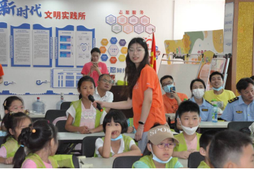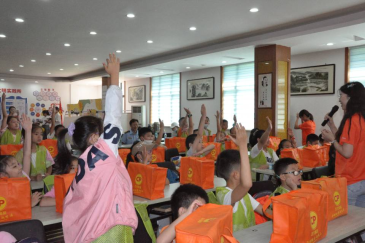 博士团主持人胡周月以“天气热时小朋友们食欲不振”为话题切入点,为大家科普了夏日人体容易出现的不良症状,并提出可以用食物打败“夏日恶魔”。比如食欲不振时可以尝试更换菜谱,巧用姜、葱、蒜等激发食欲,同时可摄入适量西瓜、黄瓜等清凉健康的蔬菜水果来预防中暑和空调病。提到“夏天到底应该怎么吃?”,志愿者以新版膳食指南为科学依据,提出要多补充维生素、盐和钾,以及要做到“一多一少一避”,即多吃苦味食物、少吃凉食、避免生食水产品。接下来,志愿者以手中的小龙虾、凉拌菜、香蕉等为例,生动地讲解了食用该类食品时的注意事项,并带领小朋友们朗读了食品安全知识顺口溜,科普宣讲趣味课堂至此结束。