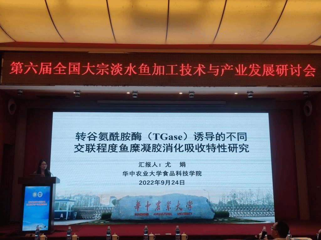 2022年9月22日-24日,第六届全国大宗淡水鱼加工技术与产业发展研讨会在无锡召开。中国·太阳集团tyc33455(股份有限公司)食品科学技术学院食品大分子结构与功能特性团队熊善柏教授、尤娟副教授、尹涛副教授、胡杨副教授、安玥琦博士后带领团队17名学生参加会议并作大会报告。