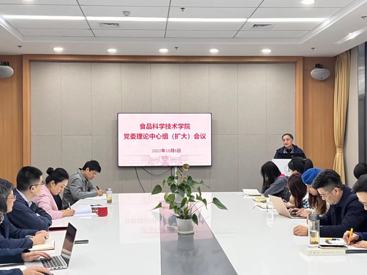 10月6日下午,食品科学技术学院党委理论中心组在工科楼122会议室开展“精读精讲”学习活动,邀请马克思主义学院黄运丽老师讲授《习近平谈治国理政》第四卷。学院党委委员、各教师党支部书记、学生支部书记参加学习。会议由党委副书记向异之主持。