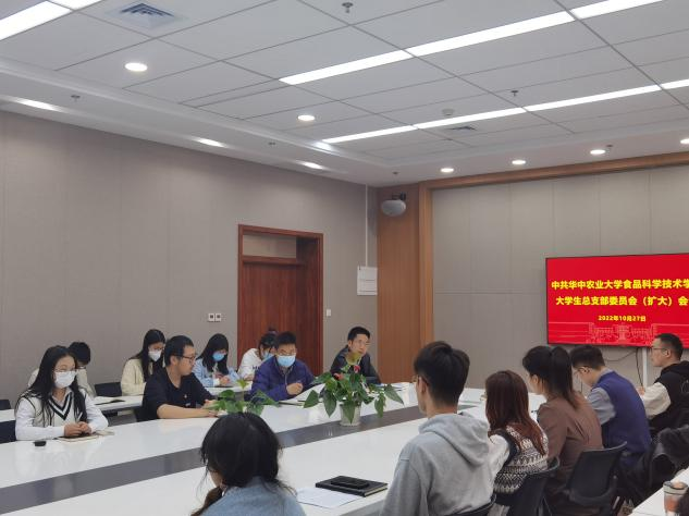 10月27日下午,食品科学技术学院大学生党总支扩大会议在新工科楼122召开。党委副书记、大学生党总支书记向异之,图书馆副馆长、组织员张柱红,全体大学生党总支委员,研究生、本科生党支部委员参加会议。会议由党总支委员、辅导员刘涵斐主持。