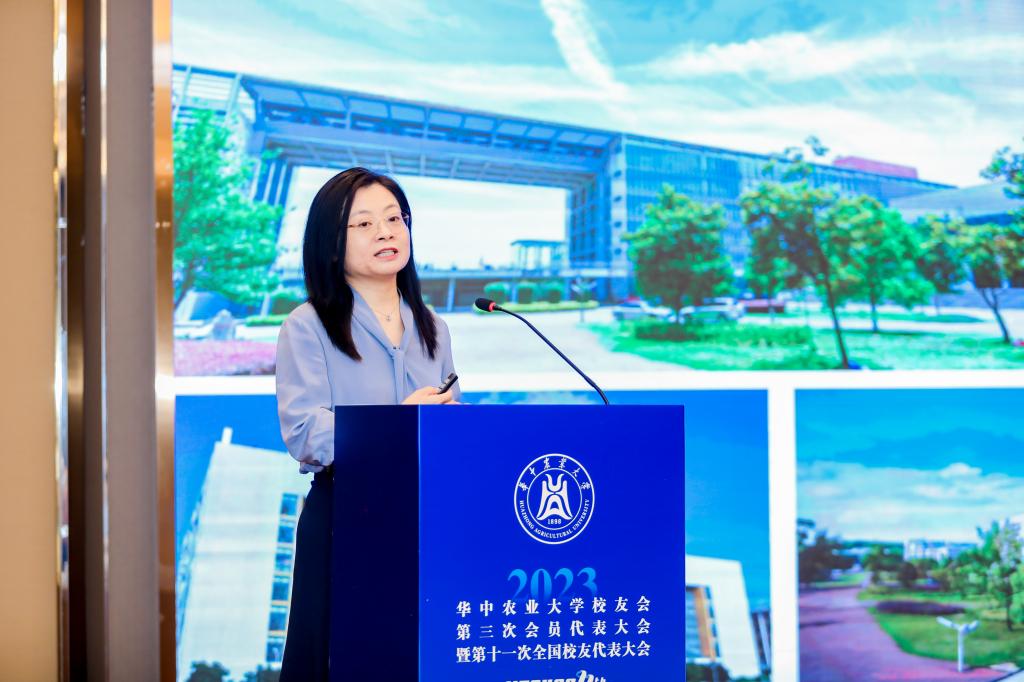食品科学技术学院院长徐晓云以“共叙校友情谊 同创美好未来”为主题,从新面貌、新成就、新发展三个层面进行汇报,重点介绍了学校学院的最新面貌、科技创新成果及40周年院庆活动方案。她表示,学院近年来在科技创新与人才培养方面取得了一定成绩,这得益于广大校友长期以来的支持。在食品科学技术学院建院40周年之际,期待校友们能为学院的发展建言献策。