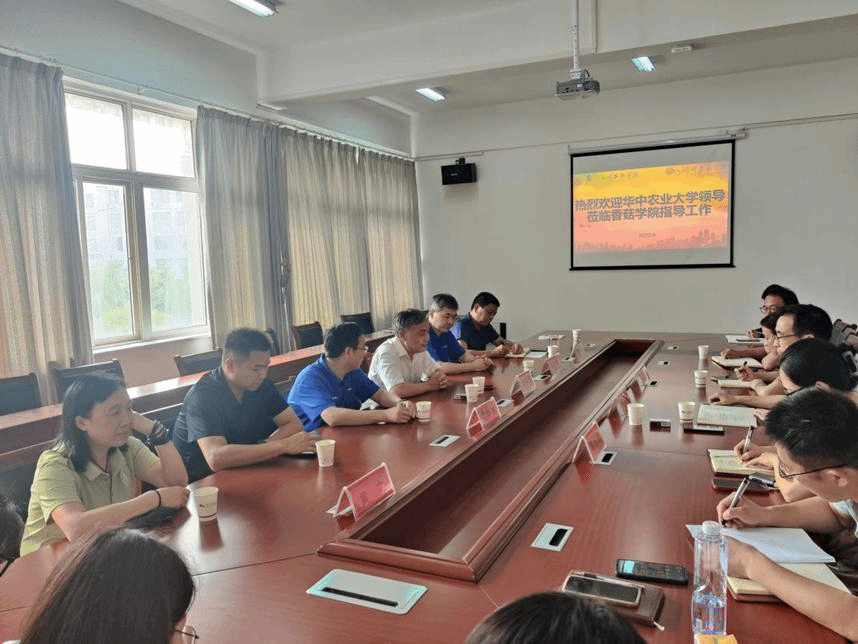 6月26日下午,杨铁贵一行前往随州职业技术学院香菇学院开展座谈交流,进一步加强院校合作,共同推进“乡村振兴荆楚行”活动的开展。在座谈会上,随州市职业技术学院院长李建伟首先对杨铁贵一行的到来表示欢迎,李建伟表示,感谢华农对香菇学院的建设给予的支持,特别是对学院绿色食品生产技术专业学生的实习实践提供的场地支持和专业指导。杨铁贵谈到,香菇学院的发展要在湖北立足,在全国立足,要为随州农业的发展做出相应的贡献。双方就学生实习实践、教学基地的建设、科研项目合作等工作进行了沟通交流。