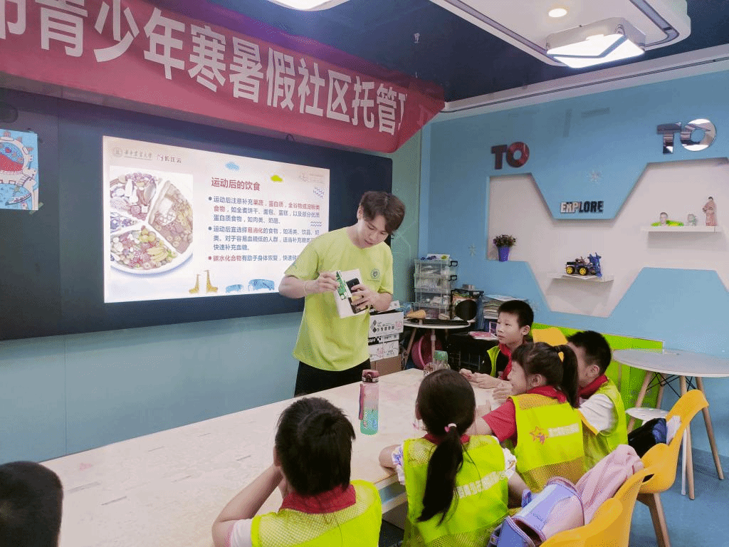 活动中有同学向志愿者提问:“老师,在运动后出了很多汗,可以喝饮料吗?”志愿者向同学们介绍:“剧烈运动过后不宜饮用太凉的水或者饮料,这样会刺激肠胃,有害健康。”“在运动后应该选择多补充常温的水或牛奶,吃一些易消化的食物,注意补充果蔬、蛋白质、全谷物等食品。”志愿者根据实际情况向同学们介绍了一些可以在运动过后食用的食品。