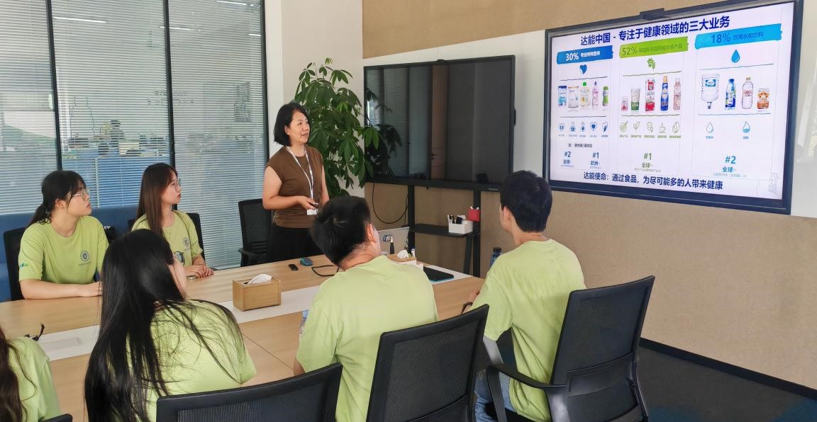 活动开始,湖北达能食品饮料有限公司企宣负责人杨斯斯带领博士团志愿者们参观了企业展厅、生产线及特色生态花园,并详细介绍了企业的整体概况、发展历程以及企业文化。