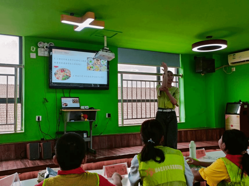 “同学们有没有好吃又健康的夏日饮食推荐给大家的呢?那我们在夏天应该多吃些什么呢?”博士团的志愿者孙莉抛出问题鼓励同学们分享自己夏喜爱的日饮食。“我在夏天喜欢吃西瓜,清凉又解渴。”“我妈妈会在夏天给煮酸梅汤喝。”志愿者从同学们最爱的饮食入手,引导同学们思考不健康的饮食产生的后果,并向同学们科普夏季健康的饮食方式。“小朋友们在夏天饮食应该以清淡、易消化为主,多吃新鲜蔬菜瓜果。”“主食要以稀为宜,适量饮用清凉饮料。”