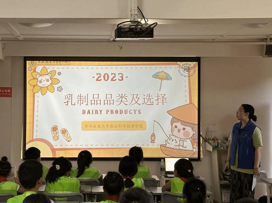 “大家知道我们生活中的乳制品都有哪些吗?”课堂开始之前,志愿者老师提出了一个小小的问题。“牛奶!”同学们异口同声地回答道。紧接着,老师从乳制品的定义和种类开始讲解:乳制品是指以生鲜牛(羊)乳及其制品为主要原料,加工而制成的各种产品。除了我们所熟知的牛奶以外,它还包括乳粉、炼乳、奶油、干酪等。