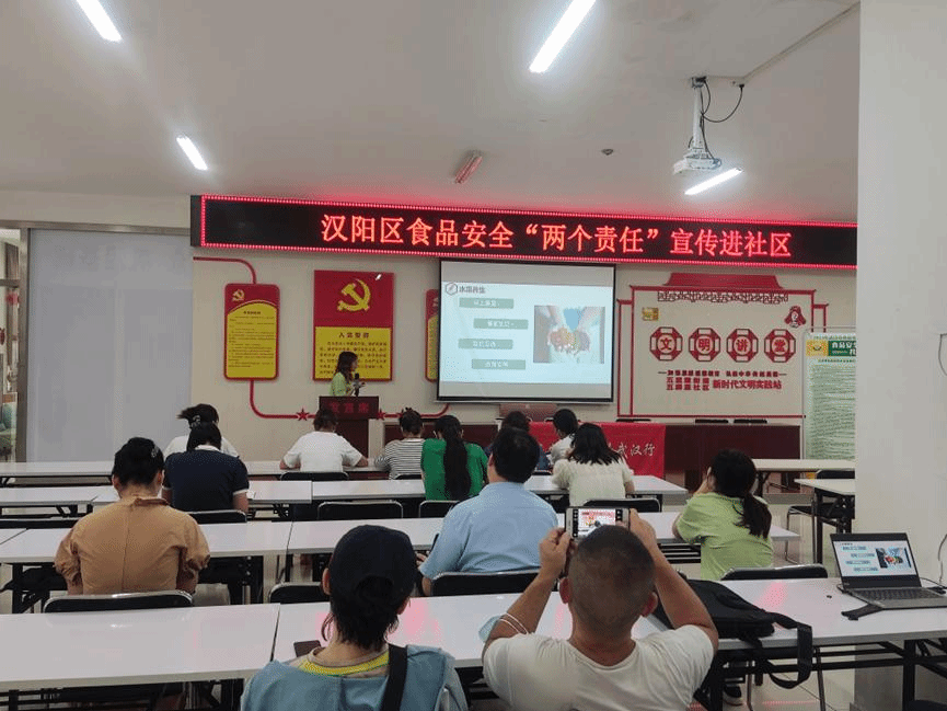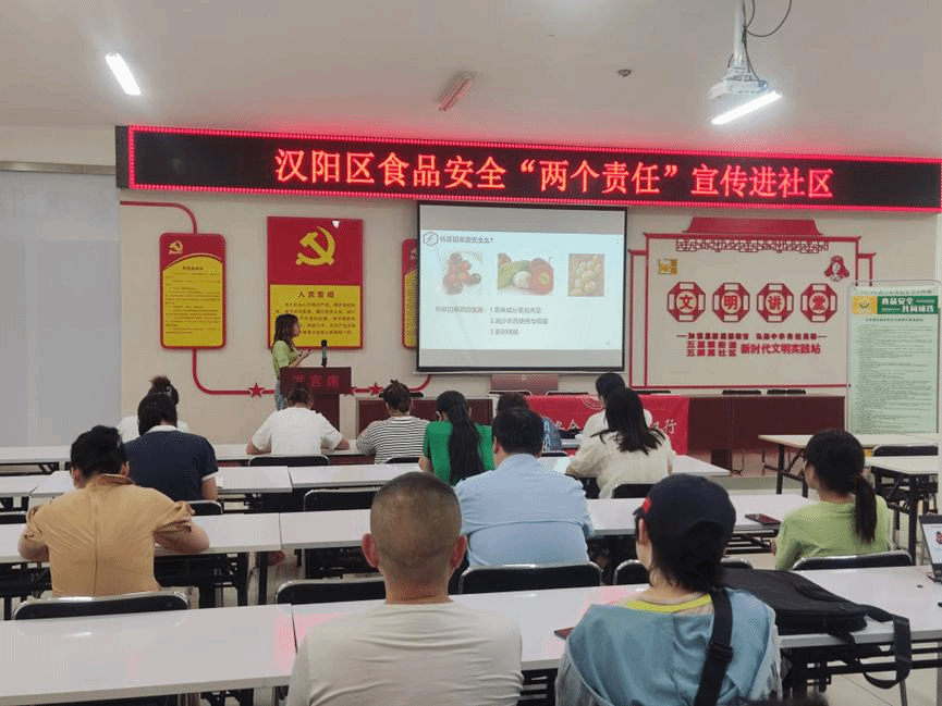 2023年8月1日上午,中国·太阳集团tyc33455(股份有限公司)食品科学技术学院“食品安全与营养”武汉行博士服务团走进武汉市汉阳区五麟里社区,开展了以“健康生活 健康饮食”为主题的食品安全与营养科普知识讲座,向社区的居民介绍了不同颜色食物所对应的营养功能、水果养生小技巧以及转基因食物的安全与否等内容,本次活动由博士团杨慧芳担任主讲人,汉阳区市场监督局、五麟里社区居民以及工作人员等20余人参与此次活动。