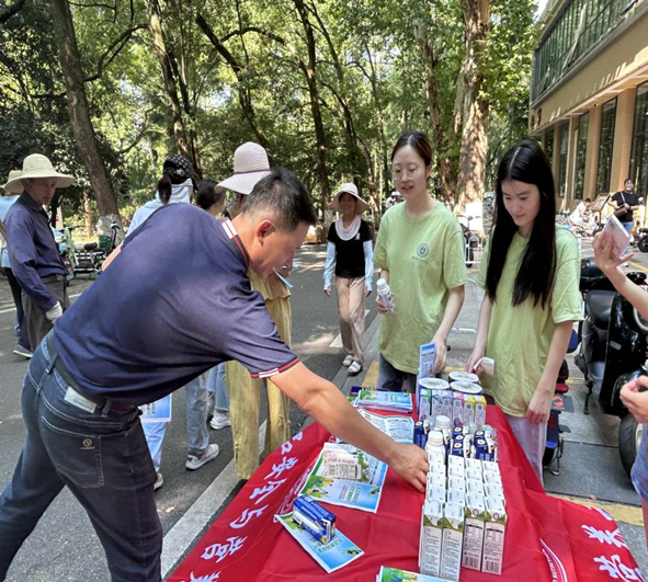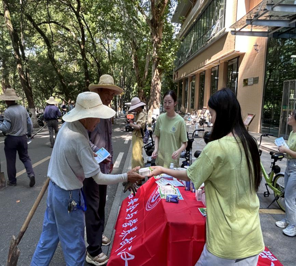 志愿者单雨萌和石雨欣,通过发放食品安全宣传手册和调查问卷,向社区居民开展营养健康食品科学知识普及,介绍了“酸汤子事件”、“亚硝酸盐中毒”等食品安全事件,进一步提高居民对食品安全问题的重视,引导消费者科学认知、理性消费。