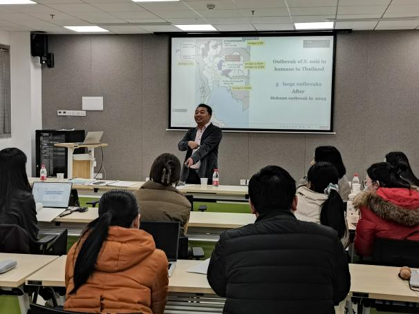 Anusak Kerdsin(副教授,Kasetsart大学公共卫生学院博士)的报告主题是猪链球菌:分子流行病学与社会文化因素。Anusak Kerdsin说:”他在泰国进行了关于猪链球菌感染和人类流行病学的研究超过10年,发表了关于这种病原体的出版物和超过35篇论文。”他的研究分享了引起的人类感染、猪链球菌的检测和分型、流行病学特征和预防控制方面的知识。