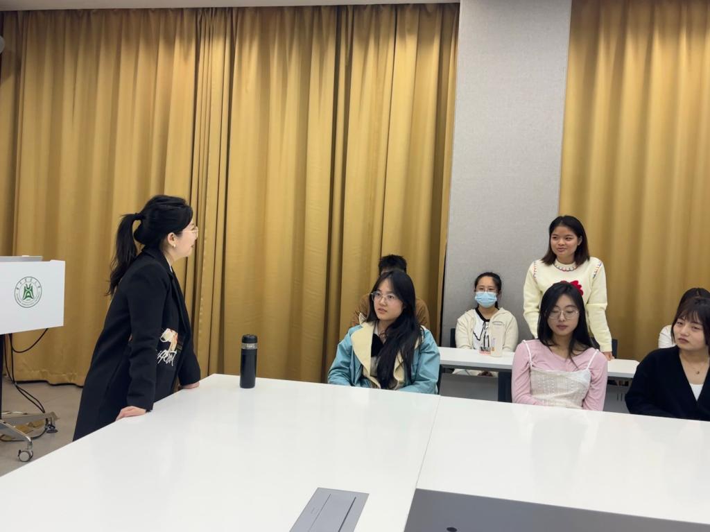 随后,为了让大家更真实地感受公务员面试氛围,张文莉老师现场随机挑选了8名同学组成无领导小组,进行往届武汉选聘生面试真题的实战演练。参与的学生不仅深刻体验了公务员面试的紧张氛围,而且有效提升了自身的应变能力、团队协作和沟通技巧。