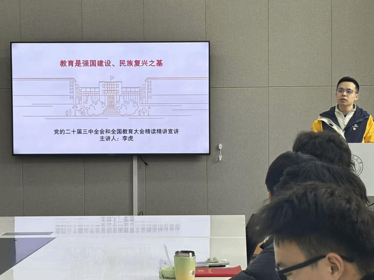 为深入学习贯彻党的二十届三中全会精神和全国教育大会精神,12月8日下午,食品科学技术学院本科生第三党支部在新工科楼225会议室举行“精读精讲”专题党课。学校宣讲团成员、食品科学技术学院辅导员、本科生第三党支部书记李虎面向支部全体党员开展宣讲。
