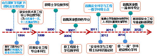 山东科技大学安全工程专业源于1960年创立的山东煤矿学院矿井通风与安全教研室。1984年在采矿工程专业下培养矿井通风与安全方向本科生,1999年正式招收安全工程专业本科学生。2011年安全科学与工程学科获该学科首批一级学科博士授予权,2012年获准设立“安全科学与工程”博士后科研流动站。自九五以来,专业依托学科先后入选山东省重点学科、山东省泰山学者优势特色学科人才团队重要支撑学科,2016年入选山东省一流学科立项建设核心学科,全国第五轮学科评估中实现高水平学科建设新突破,在“中国最好学科”排名中进入全国前10%。