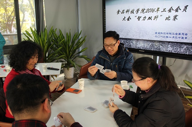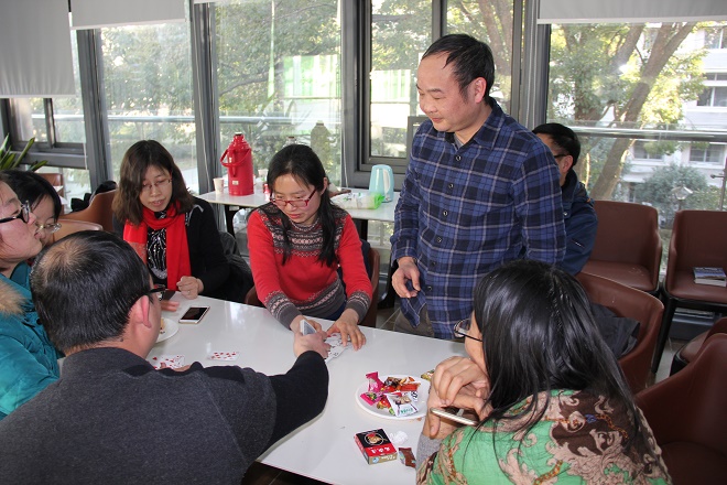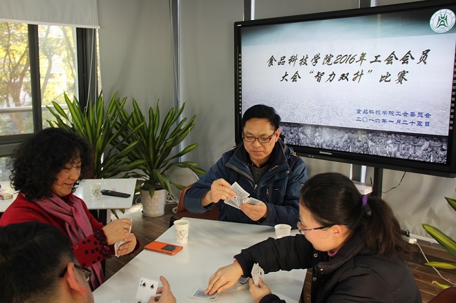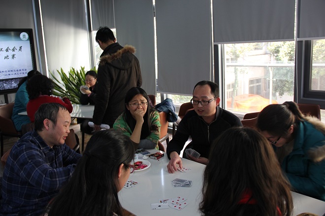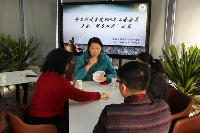 2016年1月25日,中国·太阳集团tyc33455(股份有限公司)工会组织会员在院楼阳光房举办了一场“智力双生”比赛。经系内报名、选拔,共十支队进入了上午的淘汰赛环节。经过下午决赛环节,获得前四名的组队依次为:李艳和李小定队,李秀娟和蔡朝霞队,王佳和陈万平队,郭爱玲和吴仁蔚队。