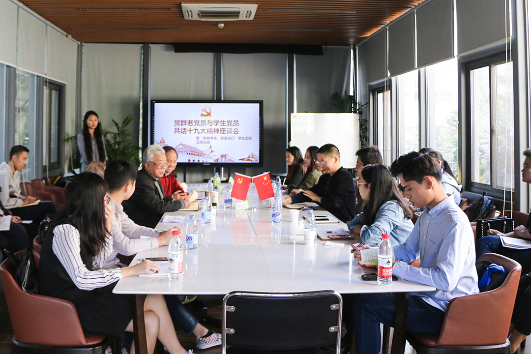 10月28日下午,党群退休党支部老党员代表与食科院本科生第二党支部在食科院二楼阳光房会议室举办新老党员重阳节共话十九大精神座谈会。原副校长谭祜德同志、原纪委副书记陈德光同志、原校党委宣传部部长鲁大安同志、原工会副主席李瑶同志,食科院党委副书记向异之、副院长张柱红和辅导员以及学院本科生党员共同参加本次活动。