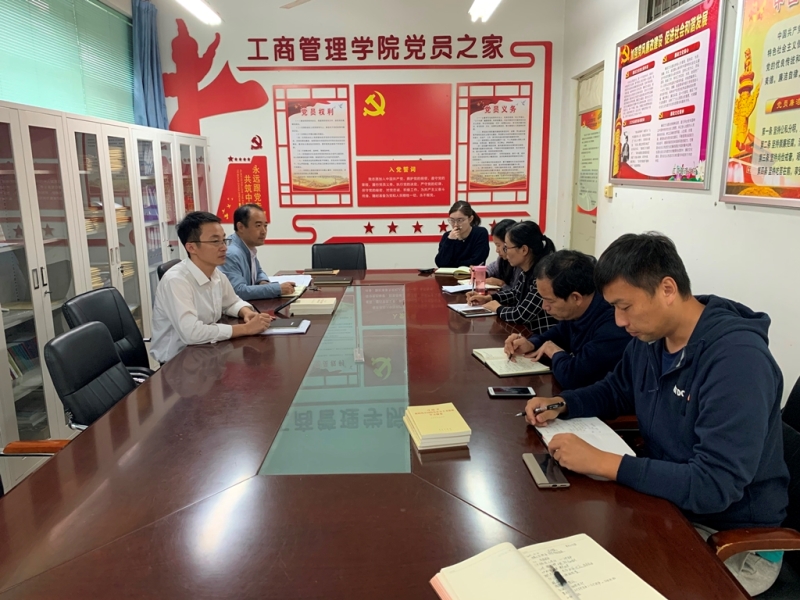 按照校党委关于开展好“不忘初心、牢记使命”主题教育的统一部署,和各二级学院党委要加强对支部主题教育开展情况进行指导监督的要求,工商管理学院党委切实提高政治站位,强化主体责任,扎实开展主题教育工作。10月10日上午,工商管理学院在党员之家召开各党支部“不忘初心、牢记使命”主题教育工作推进会。党委书记黄德金、党委副书记陈海堂听取各支部关于主题教育推进情况的汇报,并对近期主题教育工作进行指导。