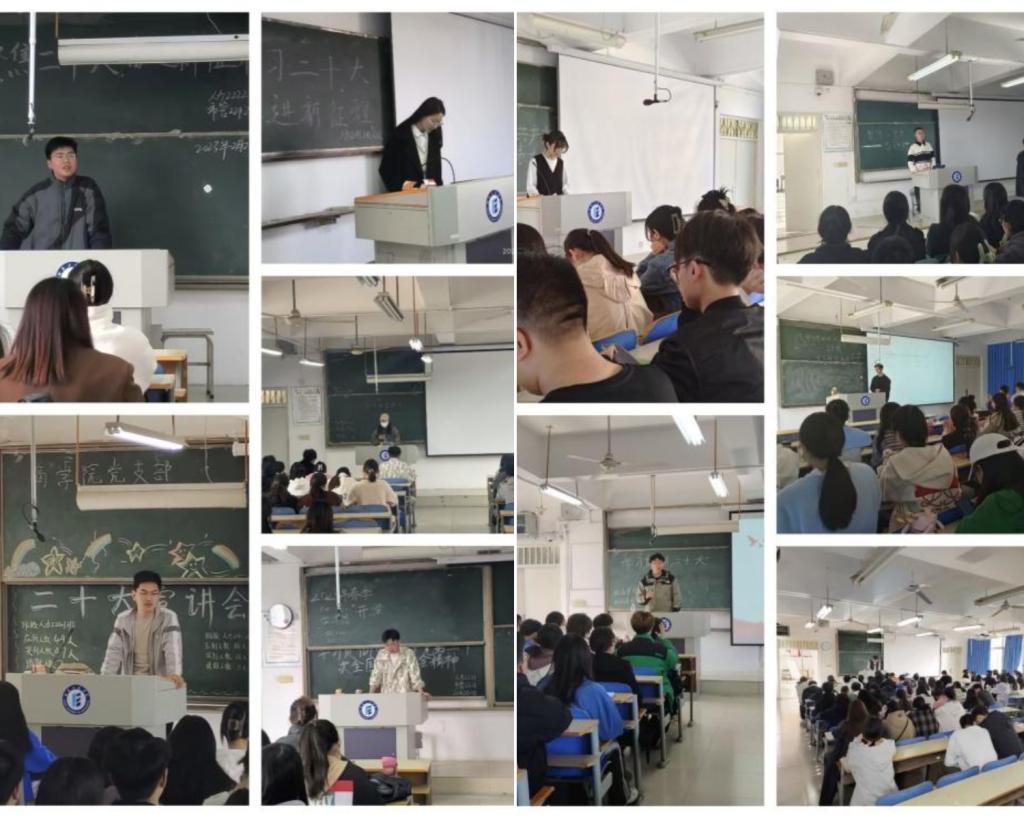 为深入学习宣传贯彻党的二十大精神,推动党的声音入脑入心,2月23日—3月6日,在商学院党委的组织领导下,10名学生党员组成宣讲团,一场主题为“聚焦二十大 奋进新征程”党的二十大系列讲话精神宣讲会走进商学院各个班级,向学院全体学生宣讲党的二十大精神。